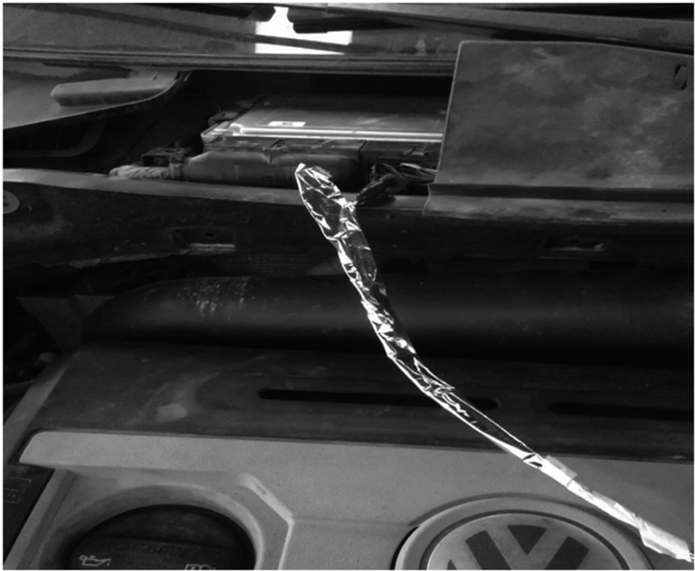 8.此时,故障点已经缩小了范围,可以明确很有可能是曲轴位置传感器转速信号受外界干扰,检查线束,发现线束有细微破裂,对发动机转速传感器的两根线束剔除更换并用锡箔纸屏蔽,进行试车,故障未再出现。