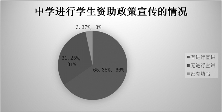 所在中学有无进行学生资助政策宣传是很关键的一个问题,资助政策的宣讲应该围绕学生来进行,而学校则是一个最直接的平台,甚至是中学生唯一能够详细了解到国家助学贷款政策的平台。据笔者在2017年暑期社会实践调研统计的最新调查数据显示,65.38%的中学有进行政策宣讲,而31.25%的中学没有进行类似的政策宣讲(见图4)。