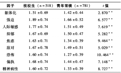 检索CNKI、万方、维普三大中文数据库发现,既往关于学生心理健康的研究多集中于基础教育和普通教育阶段的学生群体,对接受技工教育的学生心理健康的实证研究较为少见。且以往关于技校生心理健康实证研究的因样本量较小、研究方法的科学性不够等,使得研究的质量受到影响,在核心期刊上发表的数量极少。而现实生活中,随着近几年高中教育和普通高等教育的扩招,多数初中生能顺利升入高中、高中生能升入大学,技校生群体发生了较大的变化,他们更加认为自己不如他人,自我的价值感低。