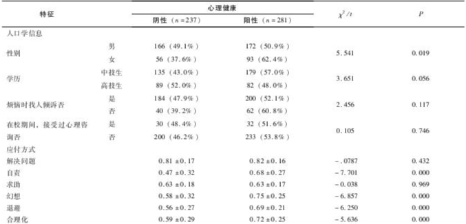 3.技工学校学生心理健康与应付方式的相关分析