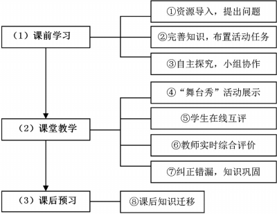 活动教学的实施过程与课程的任务相结合,采用任务引领的教学模式开展课程授课过程,以任务为引领,采用以学生为中心的翻转课堂学习,具体课堂教学结构如图1所示: