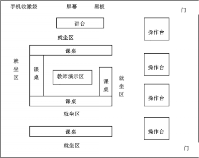 汽车电器实操室合理布局,分为学生座位区、操作区、教师讲解演示区(见图1)。