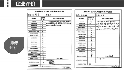 (4)全方位多视角记录:包括学生在校过程的记录、在企业时管理人员师傅对学生的评价、客人的评价、家长的评价、学生的自评以及学生对项目的评价等。