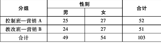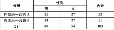 由于实际教学过程中很难将固定班级随机分配进行实验,所以本研究采用准实验研究中的不相等实验前后测设计,以广东邮电职业技术学院市场营销专业二年级学生为对象进行研究,抽签选取营销B班为教改班,进行责任制拼图教学实验。另一班为控制班,按照原有教学计划和教学方法进行教学。两班样本情况如表1所示。