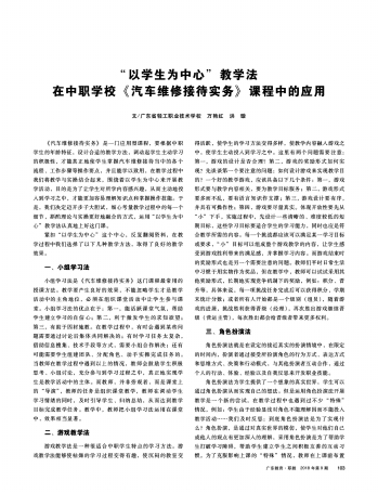 广东教育职教版 教学教法·“以学生为中心”教学法在中职学校《汽车维修接待实务》课程中的应用 105 2018-08-281 2018年08月28日 星期二