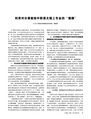 广东教育职教版 教学教法·利用对分课堂给中职语文接上专业的“翅膀” 075 2018-08-281 2018年08月28日 星期二