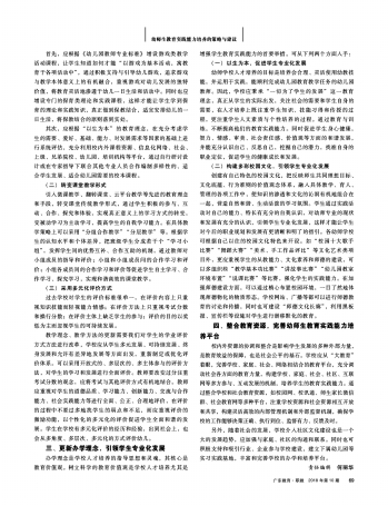 其次,应根据“以生为本”的教育理念,在充分考虑学生的需要、爱好、基础、能力、对发展需求等因素的基础上进行系统评估,充分利用校内外课程资源、信息化网络、社会、上级、兄弟院校、幼儿园、培训机构等平台,通过自行研讨设计或在专家指导下联合其他专业人员合作编制多样性的、适合学生发展、适合幼儿园需要的校本课程。