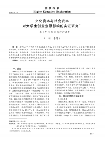 第104页:教师与学生·文化资本与社会资本对大学生创业意愿影响的实证研究