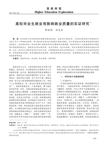 高教探索 教师与学生·高校毕业生就业观影响就业质量的实证研究 109 2015-03-151 2015年03月15日 星期日