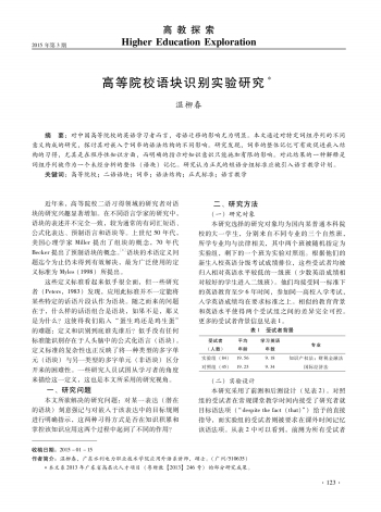 高教探索 简论·高等院校语块识别实验研究 125 2015-03-151 2015年03月15日 星期日