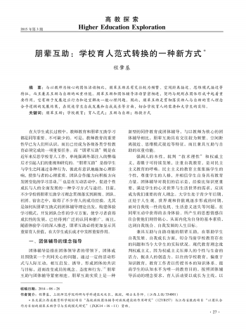 高教探索 教育管理·朋辈互助:学校育人范式转换的一种新方式 029 2015-03-151 2015年03月15日 星期日