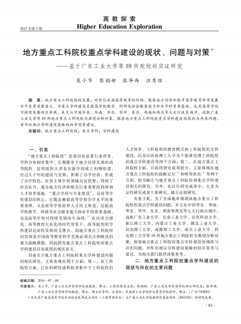 高教探索 学科与专业·地方重点工科院校重点学科建设的现状、问题与对策 065 2015-03-151 2015年03月15日 星期日