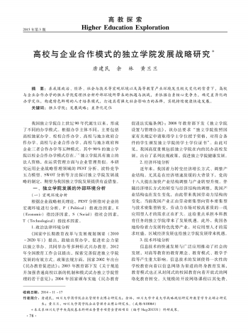 高教探索 民办教育·高校与企业合作模式的独立学院发展战略研究 080 2015-03-151 2015年03月15日 星期日