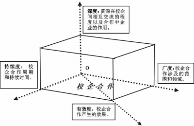 广度指校企合作涉及的范围和领域。从职业教育政策所提出的要求看,主要体现在合作主体的广泛性、合作内容的全面性、合作受众的普遍性三个方面。首先,我国职业教育政策明确规定校企合作是职业教育的基本模式,提出“引导社会力量兴办职业教育”,进一步明确“规模以上企业要设立学生实习和教师实践岗位”。“建立健全政府主导、行业指导、企业参与的办学机制”,“要求职业院校紧密依靠行业企业办学,各地区要积极探索校企合作的新思路、新措施、新方法”。可见,政府、院校、行业、规模以上企业等社会力量都应参与职业教育,充分体现了校企合作主体的广泛性要求。其次,明确提出了校企双方合作的具体内容。联合办学、联合招生、改革传统人才培养模式、学生顶岗实习、教学质量评价、学生就业,共建“双师型”教师培养培训基地、技术工艺和产品开发中心、实习实训平台、技能大师工作室等方面,涉及人才培养的全部环节,充分体现了校企合作内容的全面性要求。再者,对校企合作开展学生顶岗实习和教师实践提出了要求。中等职业学校在校学生最后一年要到企业等用人单位顶岗实习,高等职业院校学生实习实训时间不少于半年,专业教师每两年必须有两个月到企业或生产服务一线实践,充分体现了校企合作受众的普遍性,涉及每一个职教学生和专业教师。