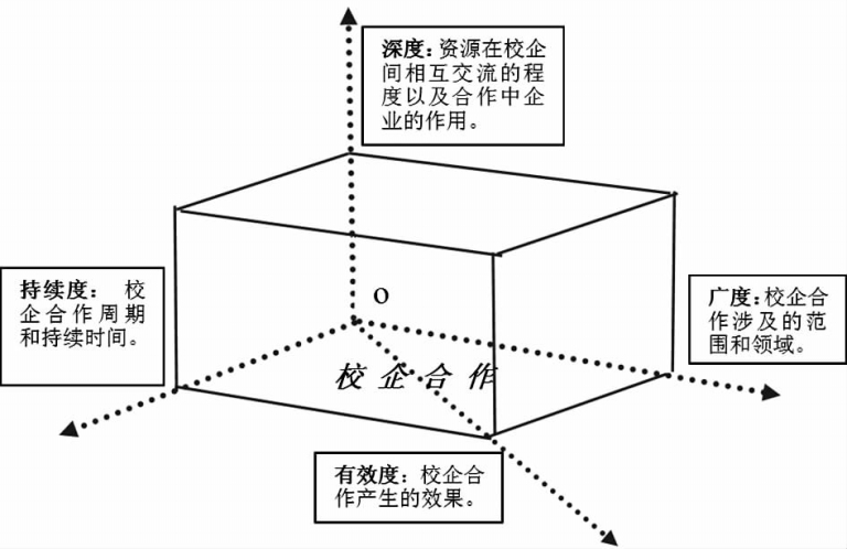 校企合作深度主要指校企合作向高级阶段发展的程度,其主要标志是合作中双方资源交流的程度,决定于企业参与程度。从我国职业教育政策的要求看,校企合作深度体现在企业投入资源、合作组织形式、合作协议以及企业作用与地位等四个方面。第一,“引导社会力量兴办职业教育”,鼓励行业企业加大投入。第二,国家政策明确要求职业院校就实习事宜与实习单位签订协议,以明确双方的权利、义务以及学生实习期间双方的管理责任。有无签订合作协议、协议执行状况也成为校企合作向高级阶段发展的特征。第三,我国职教政策明确发挥企业重要的办学主体作用。比如设立学生实习和教师实践岗位,企业要与学校共同组织好学生的相关专业理论教学和技能实训工作,做好学生实习中的劳动保护、安全等工作,为顶岗实习的学生支付合理报酬,形成以学校为主体,企业和学校共同教育、管理和训练学生的教学模式。在合作办学上,政策鼓励行业企业举办职业院校。可以看出,在校企合作的很多方面,政策鼓励企业发挥主导作用。