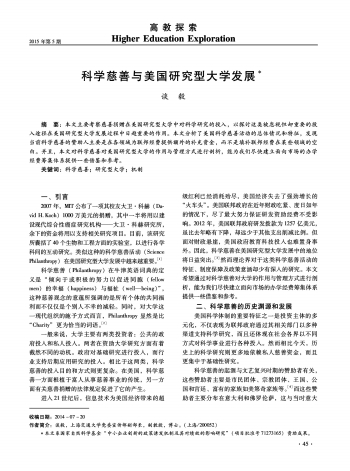 高教探索 比较教育·科学慈善与美国研究型大学发展 047 2015-05-101 2015年05月10日 星期日
