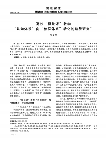 080:课程与教学·高校“概论课”教学“认知体系”向“信仰体系”转化的路径研究