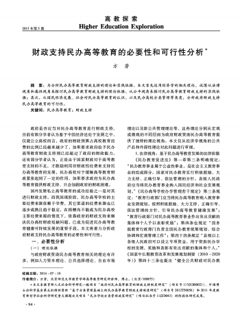 高教探索 民办教育·财政支持民办高等教育的必要性和可行性分析 096 2015-05-101 2015年05月10日 星期日