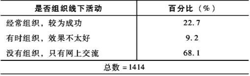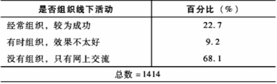 一些学者认为,过度地沉溺网络,会导致大学生脱离现实,甚至排斥现实,出现虚拟与现实相隔离的问题。但是从本次调查来看,广州地区大学生的网络组织行为在一定程度上推动实体组织的形成。如表5所示,有68.1%的受访者表示,网络组织活动只限于网上交流,从没有组织过线下活动,这表明网络组织活动仍以网络虚拟空间为主,它与现实是有距离的。但是,有22.7%的受访者表示,他们经常组织线下活动,并且较为成功,这个数字又说明,网络组织与现实并不是完全分离的,网络组织行动有可能促成现实的社会行动。