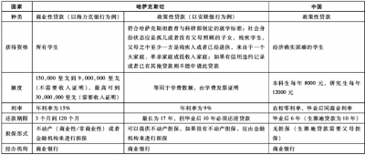 哈萨克斯坦两种助学贷款和中国助学贷款的比较如表1所示。