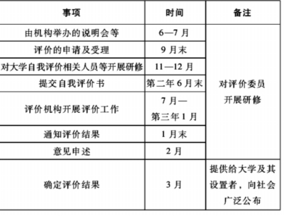 评价委员会根据在部门会议总结的书面调查与访问调查结果,形成评估报告方案,并将其送给被评价的大学,大学如果对此报告方案有意见,可在一个月内提出申述。在此基础上,评价委员会确定评价报告书,在提供给被评价大学及其设置者的同时,还要广泛地在社会上公布(日程详见表2)。