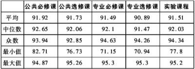 通过评教分数的统计描述可以发现两方面的问题。第一,评教分数过高,五类课程的平均分均在90以上,波动范围在90.89-91.92之间,无法体现教学质量的差别;第二,五类课程的评教得分均呈左偏厚尾分布,均不服从正态分布,表明评教得分落在低分区域的比落在高分区域的多,这与大部分数据的正态分布特征存在有差异。