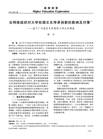 第120页:教师与学生·论网络组织对大学校园文化传承创新的影响及对策