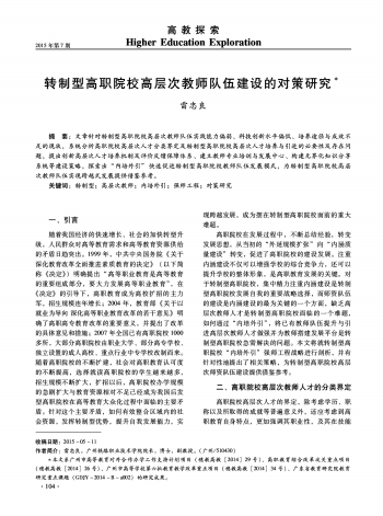 高教探索 高职教育·转制型高职院校高层次教师队伍建设的对策研究 106 2015-07-101 2015年07月10日 星期五