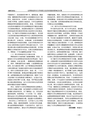 第121页:教师与学生·论网络组织对大学校园文化传承创新的影响及对策