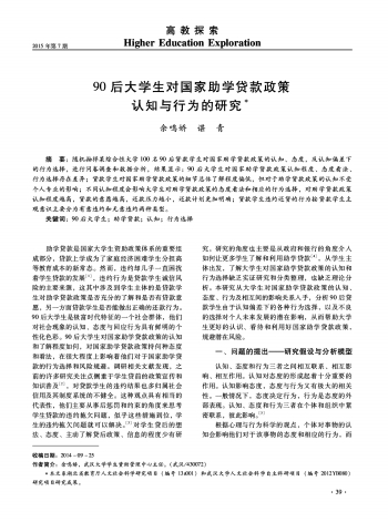 高教探索 教育管理·90后大学生对国家助学贷款政策认知与行为的研究 041 2015-07-101 2015年07月10日 星期五