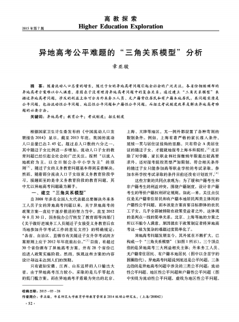 高教探索 招生与考试·异地高考公平难题的“三角关系模型”分析 054 2015-07-101 2015年07月10日 星期五