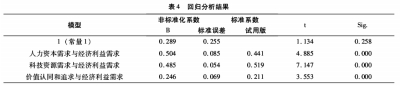 进一步运用SPSS对内部动力因素的作用机制和外部动力因素的传导机制进行回归分析,结果见表4。