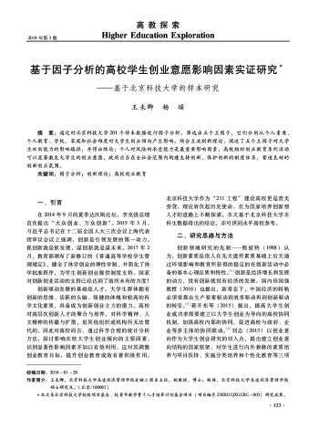 第125页:教师与学生·基于因子分析的高校学生创业意愿影响因素实证研究