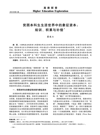 高教探索 教师与学生·贫困本科生生活世界中的象征资本:规训、积累与补偿 118 2018-03-051 2018年03月05日 星期一