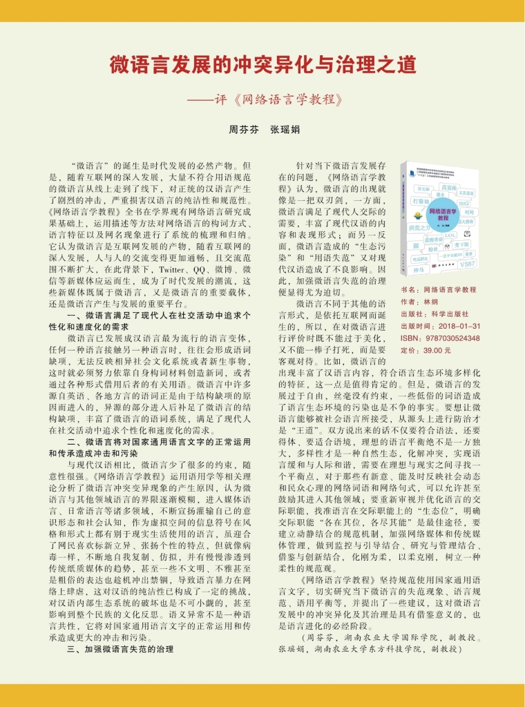 高教探索封三·微语言发展的冲突异化与治理之道143封三 2018-11-05 2 2018年11月05日 星期一