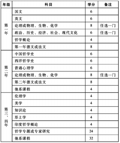 清华大学哲学系的通识教育主要体现在共同必修科目和大量的跨系选修科上。具体而言有以下特点:第一,较为重视自然科学课程的学习。自然科学类课程(论理或物理、生物、化学)在一二年级都要求修习,且学分很高,共计16学分。第二,重