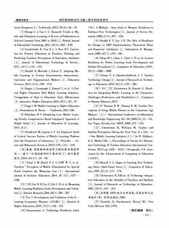 第111页:教师与学生·高校教师移动学习融入教学的准备研究