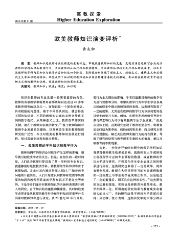 高教探索 高教探索·欧美教师知识演变评析 125 2018-11-051 2018年11月05日 星期一