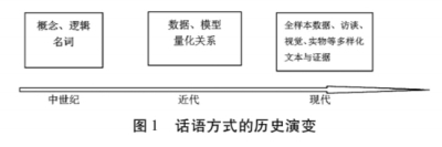 的话语方式。到了15世纪末16世纪初科学革命的萌芽使得学术话语开始产生变化,伴随着“科学”从哲学中脱离出来而产生出更为丰富的样态。“在知识的整体性大厦(宗教伦理价值的统一性和人的精神统一性)坍塌之后,自然科学不仅脱离了哲学,而且还僭越了哲学,进而成为知识领域的主宰话语。”[5]在科学逐渐脱离了神学“婢女”的角色,逐渐开创一个理性化时代的序幕下,哲学、神学话语权逐渐失去了其存在的话语根基,逐步被强调实验检验的科学话语所占据。17世纪末18世纪初,科学知识生产的制度化在欧洲大陆应运而生,英国的皇家学会以及法国的国家科学院使得知识生产走向了制度化,与此同时,对于世界的话语图示已然发生了变化,“不再是全然思辨性的、基本上受之于古代哲学家亚里士多德思想的自然哲学(为知识而知识),而代之以这样的信念:要获取有关自然世界的知识,只能第一手地研究这个世界,或是细致的观察,或是精心设计的调查实验。”[6]人们已经逐渐开始通过实验、观察的方式对科学发展做出贡献,以亚里士多德为代表的早期科学研究者一方面在使用传统的形而上的方式解释世界的同时,也在运用实验的方式去解释周围的现象。这一时期人们将教会教义、经典著作的解读作为“神圣的工作”,伴随着科学革命的推进,各种实验室下所进行的知识生产活动,强调规范的、可验证性的量化研究成为了自孔德提出的实证研究范式以来,新的学术话语方式,自此所建立起来的这样一种强调规范、逻辑关系的学术话语方式成为了当下学术秩序的主流。“能够表达我们的感官捕捉到的事物的语言,不再能表达可观察的现象。唯一恰当的语言就是数学语言,即一门描述各种因素之间复杂关系的先进学科。”[7]这其中重要的参考标准便是话语的形式是否科学,从古希腊以来一直到中世纪的学术史来看,是哲学思辨的时代,因为当时认识世界和思考世界的方式主要采取的是在人大脑中高度抽象的概念化呈现,那么随着社会文化环境的变迁,以及工业化社会的需要,我们认识世界的方式从最初的依赖于冥思而转向了对于事物的观察和记录。“人们关心的不是‘语言’运作方式的细节,而是话语在文化中的更广泛的作用……社会和文化科学中的‘话语转向’,是近年来发生在我们社会的知识中的最重要的方向转换之一。”[8]