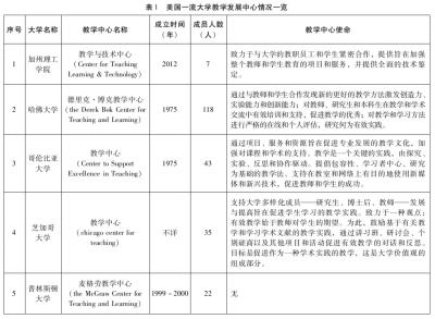 美国一流大学设立教学中心时间较早,发展也相对成熟。密歇根大学是美国最早成立教学中心的大学,其成立时间为1962年,该教学中心的成立是美国大学教学中心发展历程中的第一个里程碑;第二个里程碑是丹佛基金会在1975年对五所一流大学的拨款,拨款直接用于帮助大学建立教学中心。这五所大学分别是纽约州立大学、西北大学、哈佛大学、斯贝尔曼学院、斯坦福大学[1]。如今,美国虽不是所有的大学都设有教学中心,但其已成为一种不可阻挡的趋势,尤其在一流大学中设立教学中心的情况已十分普遍,如中西部十大名校联盟中的所有高校以及所有的常春藤盟校无一例外[2]。
