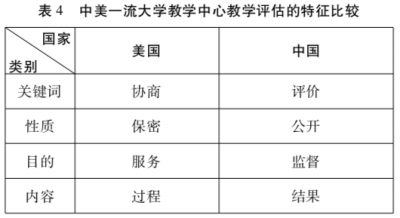另外,与美国不同的是我国教学评估的结果是公开的,形式相对单一。但近年来也有少数教学中心效仿美国,不再由教学中心进行单一的教学结果评估,如浙江大学将评估重点转向同行评课和学生学习评价。还有一些学校向美国一流大学教学中心学习,转换其在评估中的角色和定位,评估结果从公开向私密转变、评估目的从监督向协助转变。如上海交通大学开始注重过程性评估,其宗旨是帮助教师发现问题、寻求解决问题的办法,从而提高自己的教学水平,改善课堂教学效果;提供私密个性化服务,咨询员与教师的面谈以及学生的反馈意见等都是私密的,只对教师本人公开;收集真实反馈,通过第三方(教学发展中心咨询员)进入课堂的方式,从学生那里收集最真实、最集中的教学改进建议,教学发展中心在学生反馈的基础上形成分析报告后反馈给教师,再与教师一起讨论改进课堂教学的办法,从而使教师更有针对性的提高教学质量[9]。