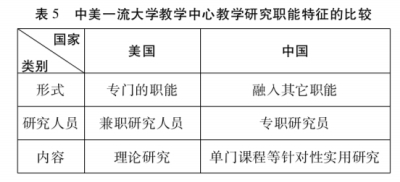 中美一流大学教学中心在教学研究的研究人员、形式和内容三方面也存在明显区别。我国主要由一些兼职的专家和顾问来担任相关的研究任务,如中国科学技术大学聘请校内外教学名师和教育领域专家担任顾问,复旦大学由一名高等教育研究所的研究人员担任教学研究与发展工作,上海交通大学有一名专职人员从事教学评价研究等。美国绝大部分一流大学有专职研究人员,如弗吉尼亚大学教学中心有两名博士后人员作为研究助理,他们来自不同学科,在承担各自学科教学任务同时,结合实践经验分别对各自学科的教学方法进行研究,并承担一定的咨询和评估工作,芝加哥大学教学中心的专职研究人员同样来自不同学科,与弗吉尼亚大学卓越教学中心不同,他们善于从擅长的学科视角来对教学工作进行跨学科研究。研究人员的类型也决定了中美一流大学教学中心各自研究内容的不同,我国主要集中于教学理论、教学评价方法、高等教育基本理论等方面的基础研究,而美国则侧重于对具体每门课程的教学方法、评价进行研究,或者进行跨学科的创新研究。