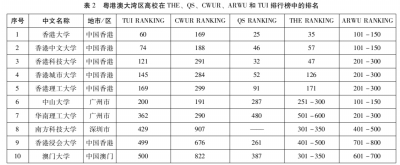 2.2020世界大学TUI排名中粤港澳大湾区高校排名