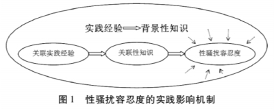 特殊性习性由关联性实践产生的关联性知识内化而成。特殊性习性是习性在具体情境中的具体性情,由与具体情境有关的关联性知识内化而成,引领行动者对具体情境的具体反应。关联性知识是背景性知识的一部分,是行动者长期实践过程中形成的与具体情境有直接关系的知识,内化成行动者的特殊性习性。关联性实践是行动者长期实践活动中的一部分,与具体情境直接相关,生成与具体情境相关的关联性知识。因此,关联性实践生成关联性知识,关联性知识内化为特殊性习性,引领具体情境下行动者的具体行为。同样,背景性知识也会对特殊性习性产生影响,是更为宏观的价值层面倾向性的影响。实践经验和关联实践经验分别产生的背景性知识和关联性知识影响大学生性骚扰容忍度的机制如图1。