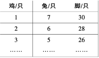 再如解决“鸡兔同笼”的问题时,使用列举法比较便于学生理解。
