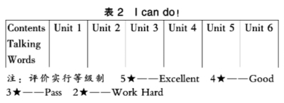 在“自我评价”一栏中,我们采取每次课后自我评价,单元自我总评的形式,记录和评价学生学习英语的各种情况,让学生客观地评价自己,充分发挥其主体评价意识。我们还用一张补充表“I can do it!”,用到小组长处读出的形式来检查学生一单元的对话和单词的掌握情况。这样,可以使他们的内在动力更加强烈,家长和老师的鼓励也将使学生更加充满信心。(见以下各表)