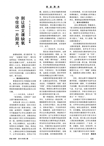 师道教研版 课堂聚焦·守住这一片阳光,别让语文课缺氧 133 2014-02-281 2014年02月28日 星期五