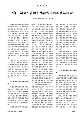 185:我教我思·“自主学习”在思想品德课中的实践与探索