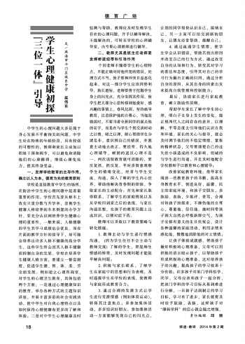 师道教研版 德育广场·“三位一体”引导学生心理健康初探 020 2014-02-281 2014年02月28日 星期五