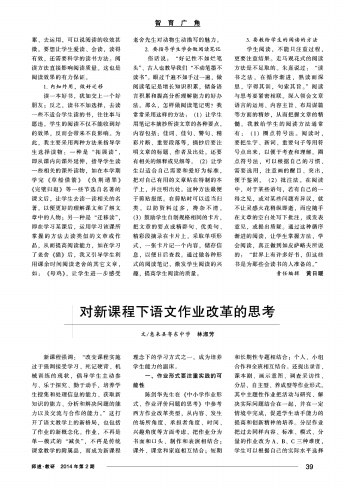 师道教研版 智育广角·对新课程下语文作业改革的思考 041 2014-02-281 2014年02月28日 星期五